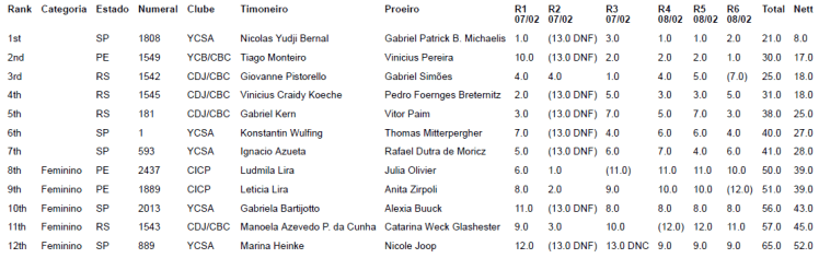 O campeonato termina no domingo (10/fev) com a previsão de realização de 12 regatas no total.