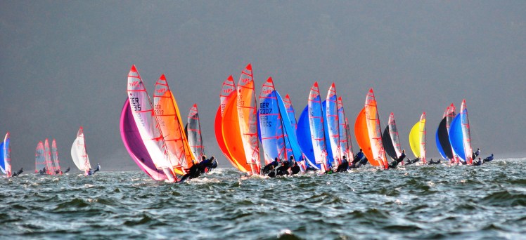 29/07/2019 – Depois de aguardar 5 horas em terra por melhores condições de vento foram realizadas as 3 séries de regatas programadas para o primeiro dia com vento variando entre 7 e 9 nós e mar picado. O 175 barcos foram divididos em 4 flotilhas (amarela, verde, azul e vermelha) e em duas raias.