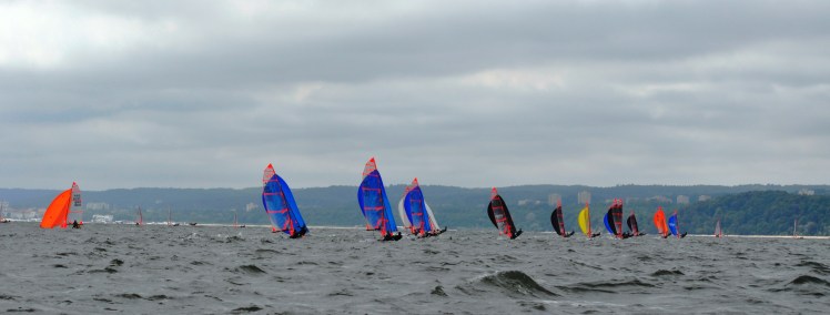 30/07/2019 – No segundo dia de regatas do Campeonato Mundial da Classe 29er (2019 Zhik 29er Worlds) o vento aumentou. Haviam muitas nuvens no céu, mas não choveu. Foram realizadas três regatas com vento variando entre 14 a 16 nós, com mar muito picado com algumas ondas curtas e cavadas.