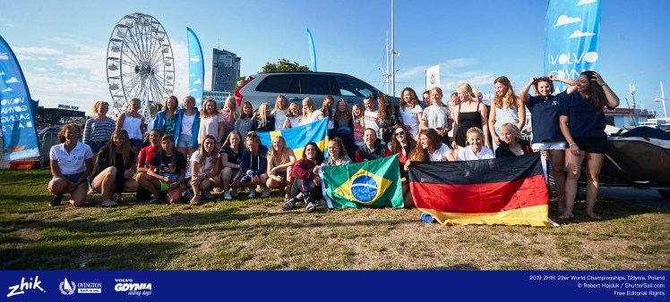 03/08/2019 – A Cerimônia de premiação do Campeonato Mundial da Classe 29er 2019 – 2019 Zhik 29er Worlds – Gdynia, Polônia, foi realizada no final da tarde após as regatas do último dia.