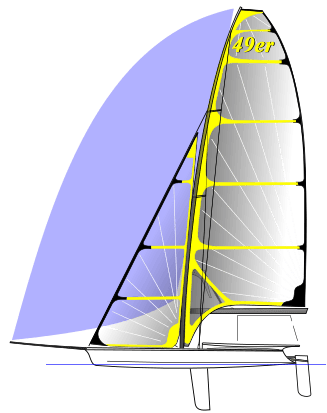 O barco apresenta asas de 9 pés de largura para permitir que os velejadores alcancem alavancagem máxima e mantenham a enorme área vélica que é suportada em um mastro de fibra de carbono One Design. Com uma enorme área velica para um pequeno barco, 59 metros quadrados, o 49er pode navegar mais rápido do que a velocidade do vento.