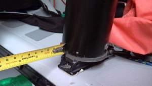 O comprimento de parte do estai de proa que excede a base do pé do mastro (base encaixada no mastro) até a superfície de contato mais afastada do pino que prende o estai de proa deve ser entre 445 e 460 mm.